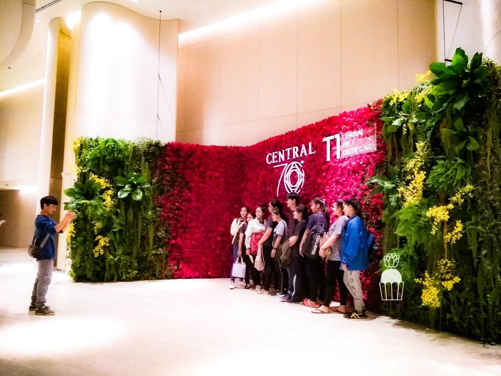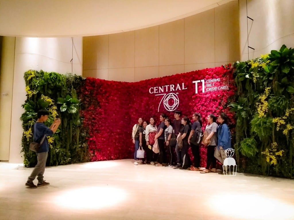การจัดดอกไม้ในงาน ขอบคุณ ลูกค้า ของ ห้างเซ็นทรัล ชิดลม ด้านหน้างาน เป็น Flower Backdrop จัดด้วยดอกไม้สีแดง ด้านข้าง ซ้ายขวา จัดด้วย ใบไม้ต่างๆ ลักษณะเหมือนสวนแนวตั้ง เพิ่มบรรยากาศ ให้งาน ดูสดชื่น ให้กับแขกที่มาร่วมงาน.