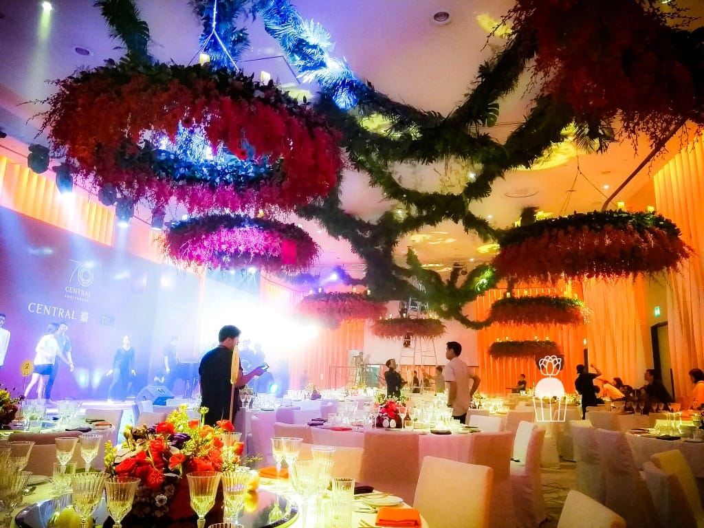 การจัดดอกไม้ในงาน ขอบคุณ ลูกค้า ของ ห้างเซ็นทรัล ชิดลม ด้านหน้างาน เป็น Flower Backdrop จัดด้วยดอกไม้สีแดง ด้านข้าง ซ้ายขวา จัดด้วย ใบไม้ต่างๆ ลักษณะเหมือนสวนแนวตั้ง เพิ่มบรรยากาศ ให้งาน ดูสดชื่น ให้กับแขกที่มาร่วมงาน.