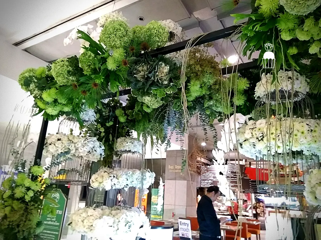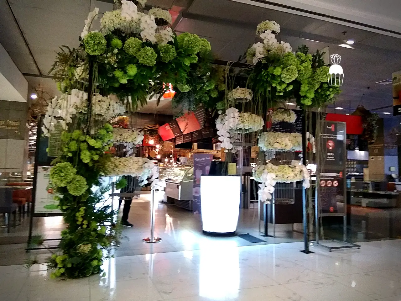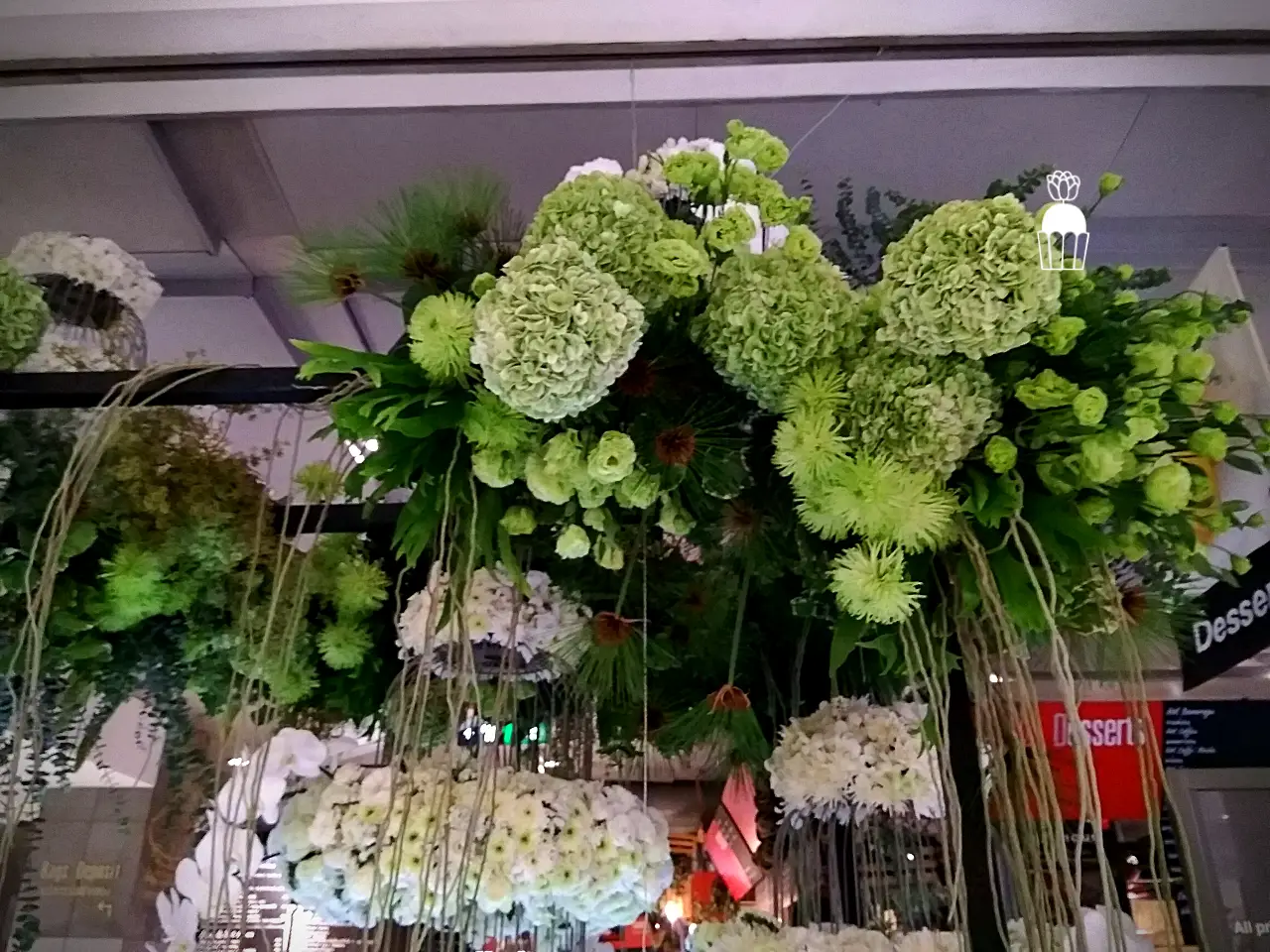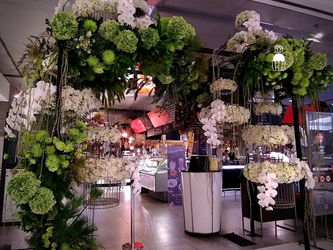 ซุ้มดอกไม้หรูหราด้วยการจัดดอกไม้โทนสีขาวและเขียว