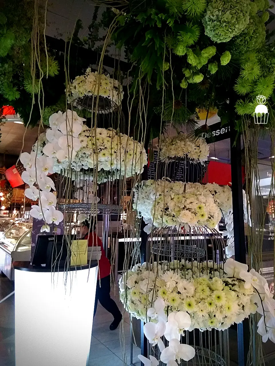 This luxurious floral arch blends the beauty of white orchids, chrysanthemums, and hydrangeas with lush green foliage. The combination of white and green gives a fresh and natural look, making this arrangement ideal for enhancing the elegance of any venue.