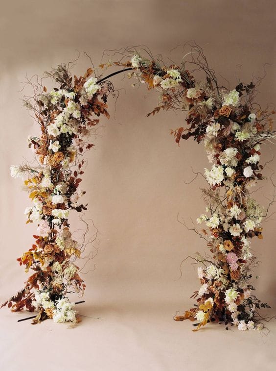 คือโครงสร้างทรงโค้ง ขนาดมาตรฐานประมาณ 2×2.2 เมตร (กว้าง-สูง) โดยทำจากเหล็กดัด ให้เป็นทรงโค้ง ต้องมีฐานเป็นเป็นเหล็กแผ่น 2 ทั้งข้าง เพื่อป้องกันไม่ให้ล้ม ช่างดอกไม้ก็จะจัดดอกไม้ติดไปกับโครงสร้างโค้งนี้ ตามแต่ดีไซน์ของงาน จุดที่วางในงานโดยทั่วไปจะที่ผนังหรือที่ว่างด้านใดด้านหนึ่งของประตู ทางเข้าห้อง เพื่อให้แขกสามารถถ่ายรูปได้ หรือบางงานจะใช้เป็นประตู หรือวางติดกับประตู เพื่อให้แขกที่มาร่วมงานเดินลอดซุ้มนี้ เรียกว่า “ซุ้มลอด” หรือใช้เป็นฉากหลังทำพิธี เช่น งานหมั้นหรืองานรดน้ำ งานสวมแหวนในพิธีแต่งงานแบบคริสต์ ก็ได้เช่นกัน