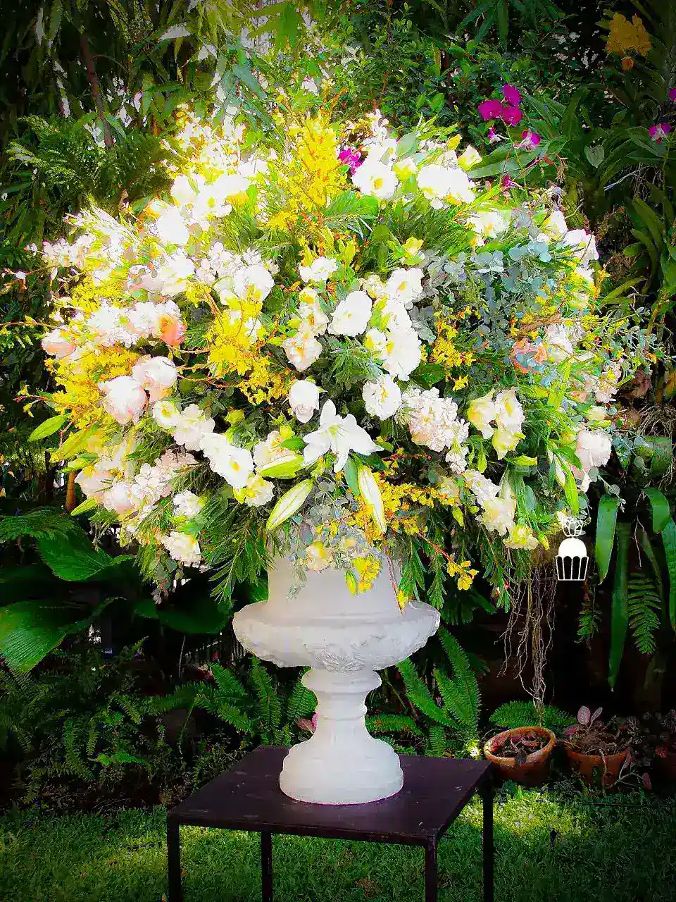The floral design focused on soft yellow and white tones, symbolizing elegance and purity.
