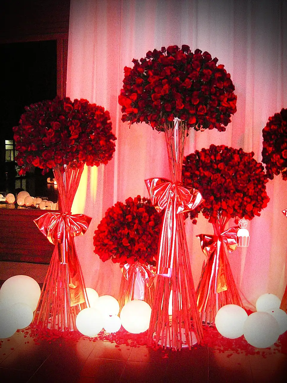 งานแต่งงานที่ออกแบบด้วยดอกกุหลาบสีแดงตลอดทั้งงาน ตั้งแต่ซุ้มพิธี ทางเดิน ไปจนถึงโต๊ะรับรอง ผสานกับแสงไฟสีแดง เพื่อสร้างบรรยากาศที่หรูหรา โรแมนติก และเต็มไปด้วยพลังของความรัก และน่าประทับใจ